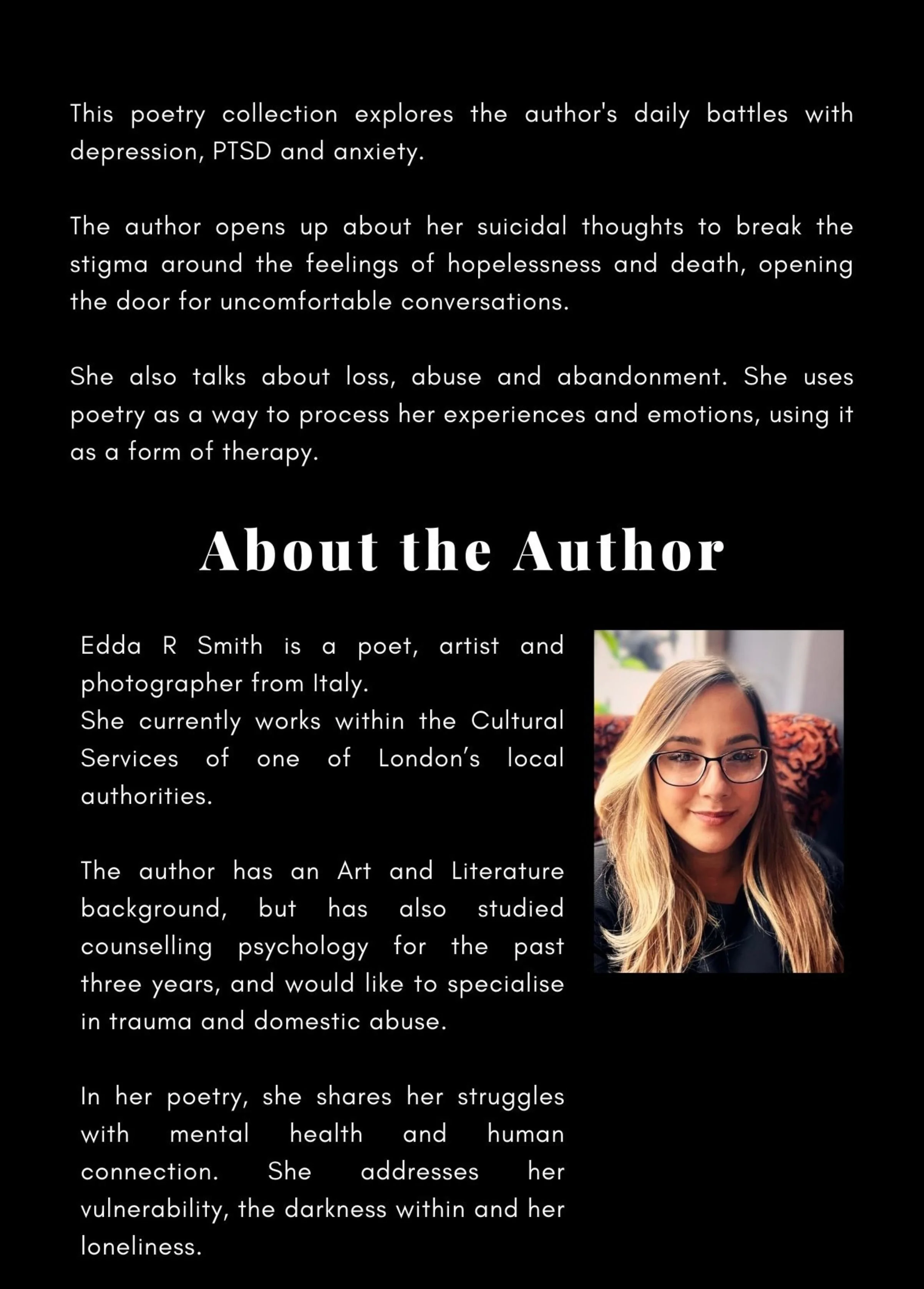This poetry collection dives deep into my personal journey with mental health, offering intimate glimpses into the various struggles I experienced.